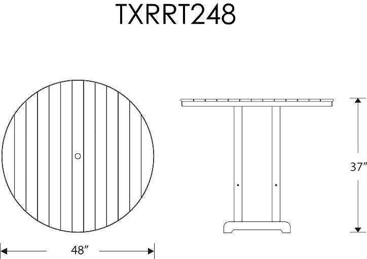 - Slatted tabletop features 1.625" umbrella hole and thin gaps for water drainage